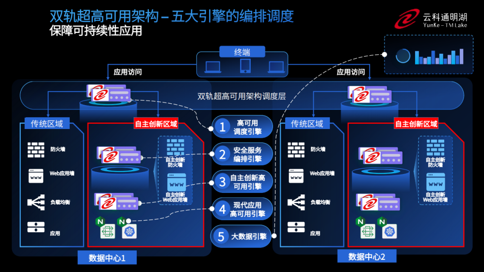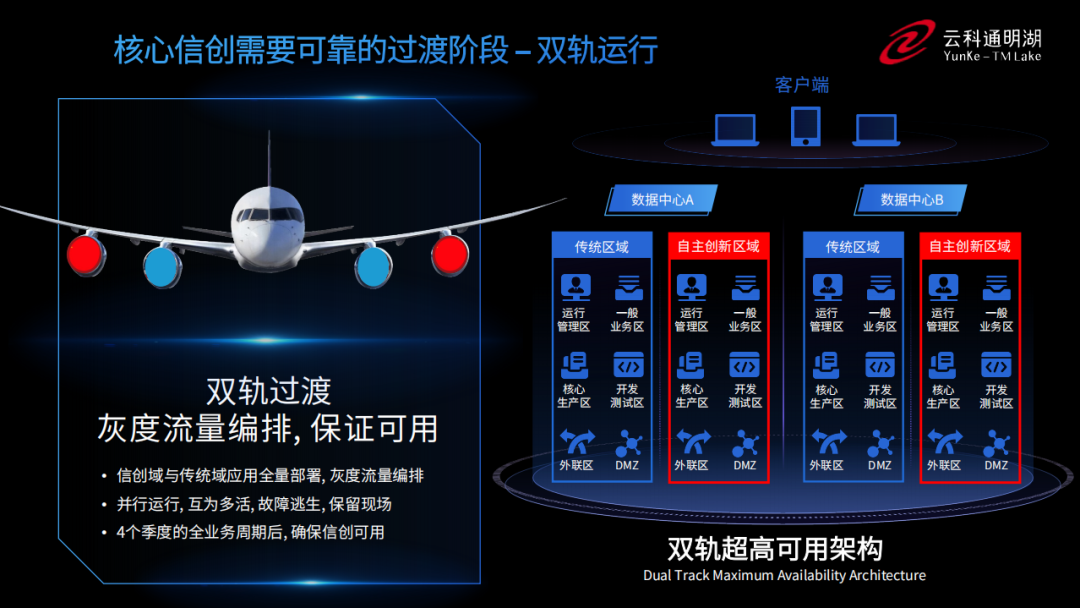 为实现双轨超高可用架构信创区和非信创区的跨域协同,实现信创区域和非信创区域的平滑过渡,Z6·尊龙凯时通过五大引擎实现多层次的应用可持续性。