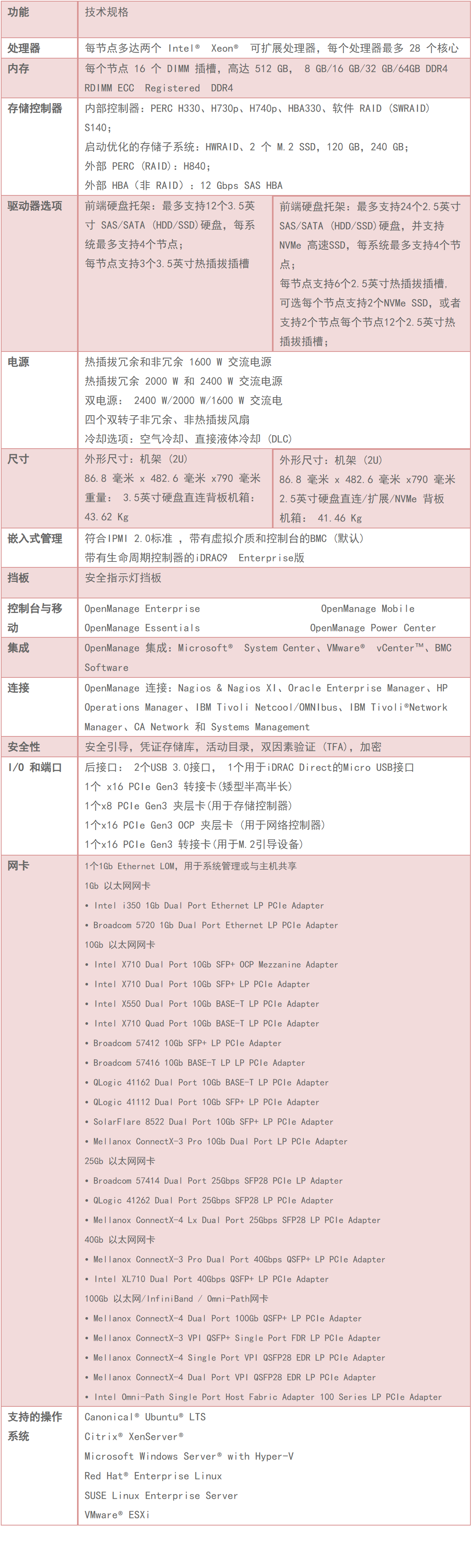 • 此外,还可以利用集成的采用生命周期控制器的iWeb和 Redfish API,提供高级管理和脚本编制支持。